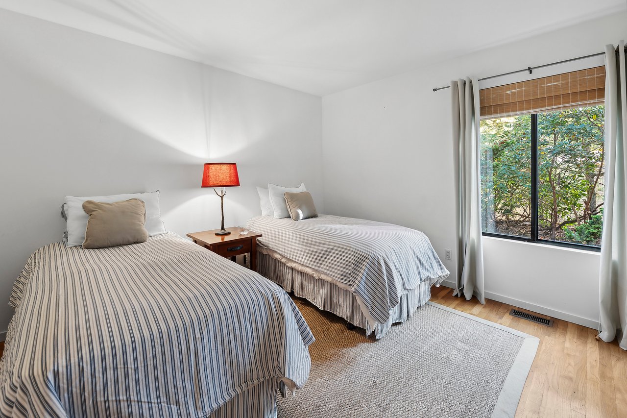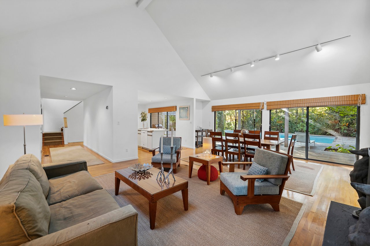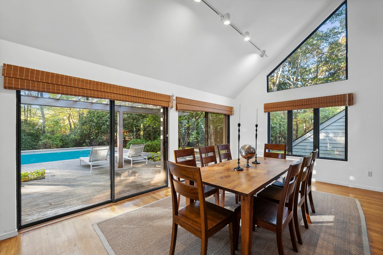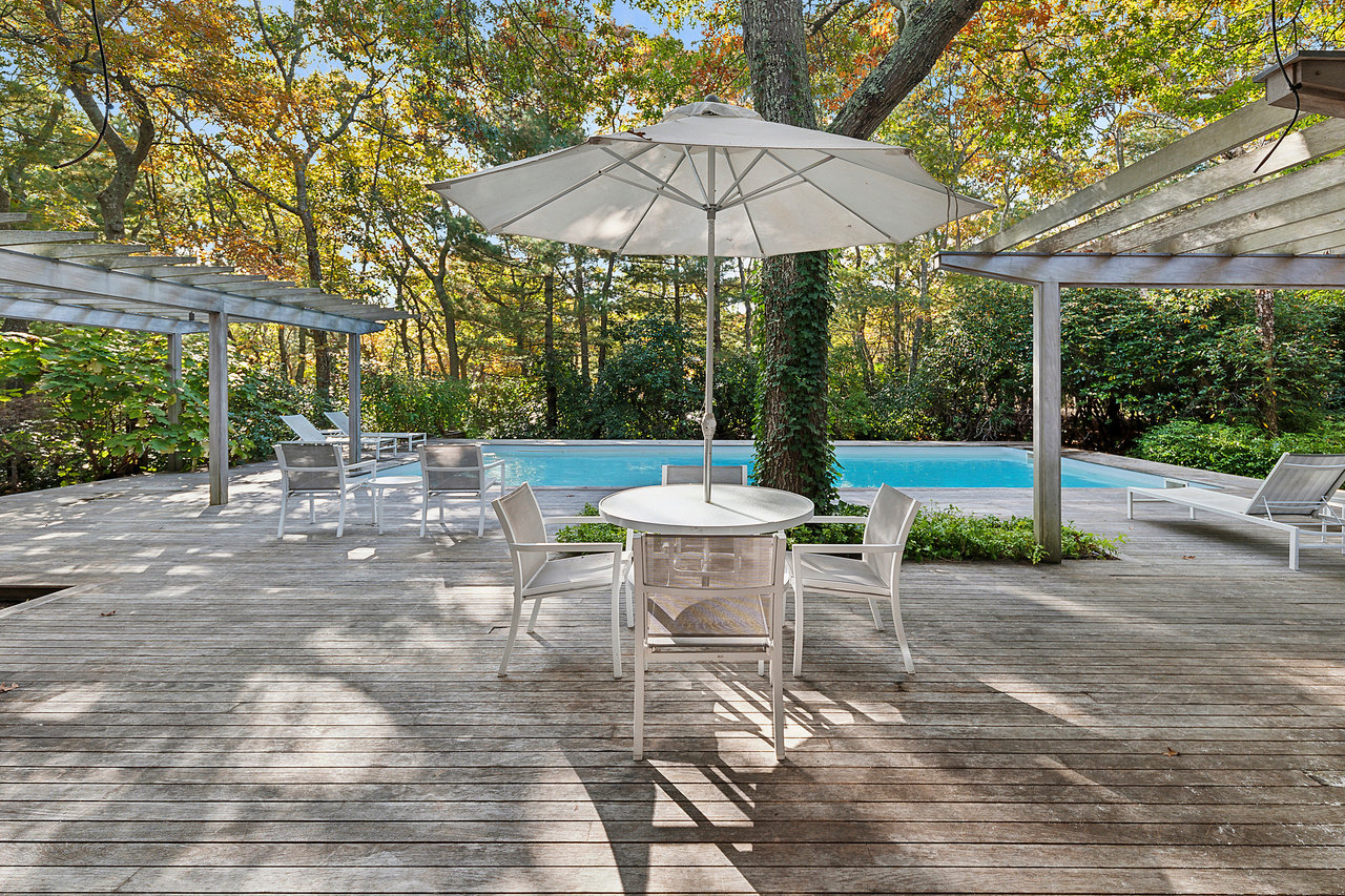 Situated on a tranquil cul-de-sac in the hamlet of Wainscott, this home offers a refreshing and clean contemporary design. With approximately 2,000 square feet of living space, it features three bedrooms, including two guest rooms and a bath on the first floor, and a generous primary suite on the second floor. The second floor also includes a versatile den that can be easily converted into a fourth bedroom. The gracious entry hall provides a welcoming space for guests and leads into the spacious living area, bathed in natural light. Its minimalist style serves as the perfect backdrop to easily envision your future here. The interior seamlessly transitions to an outdoor oasis, where mature gardens and expansive mahogany decking allow for summer entertainment or peaceful relaxation by the pool. Conveniently located between Sag Harbor and East Hampton, this home offers easy access to the best of everything the Hamptons has to offer.